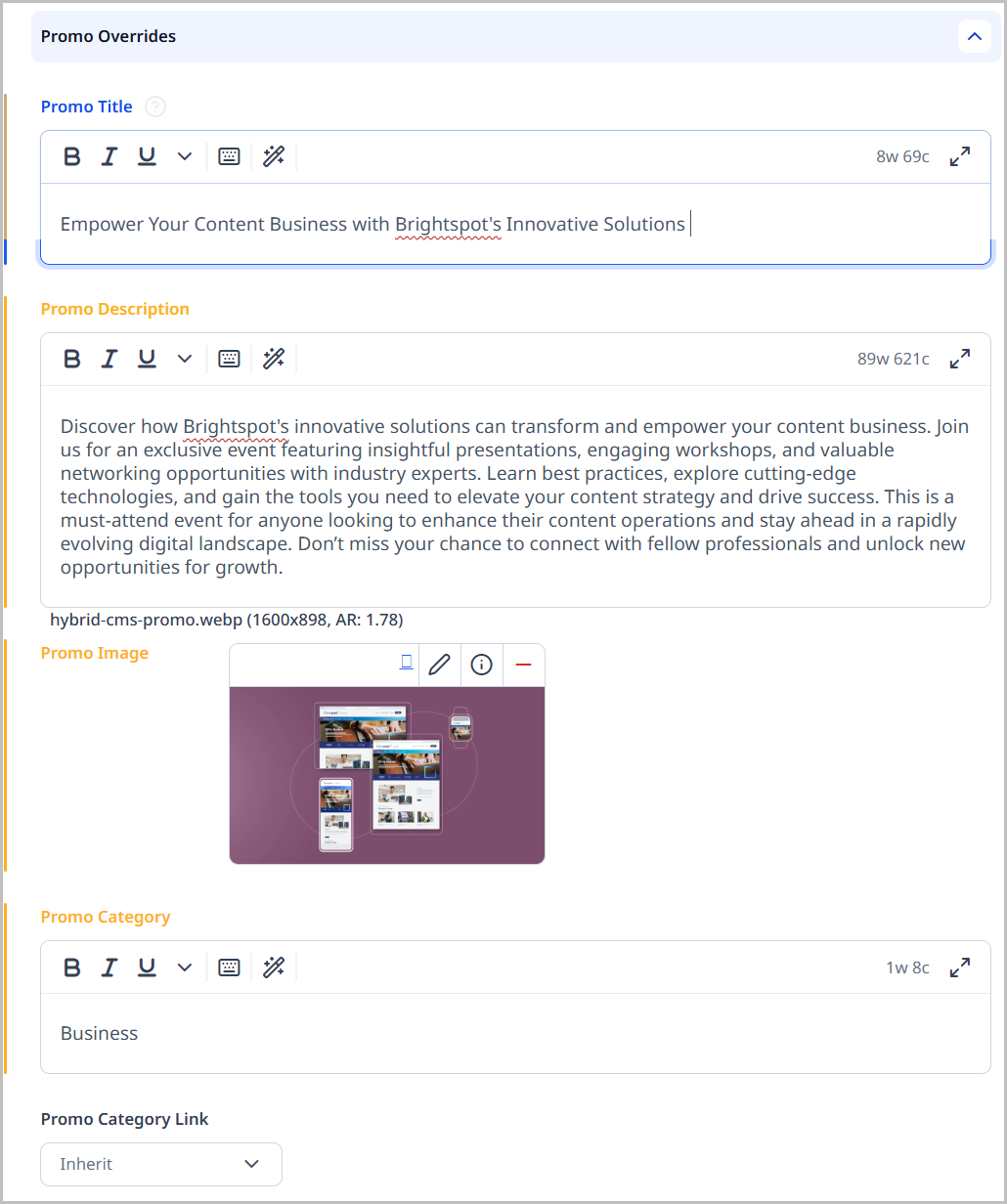 When content is submitted to Sailthru, it is only the data contained in the Overrides > Promo Overrides cluster for that asset that is sent.