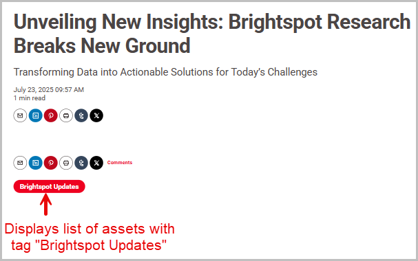 Editors use tags and sections to group assets into categories. When an asset has a tag, visitors can click on the tag and view a list of other assets associated with that tag.